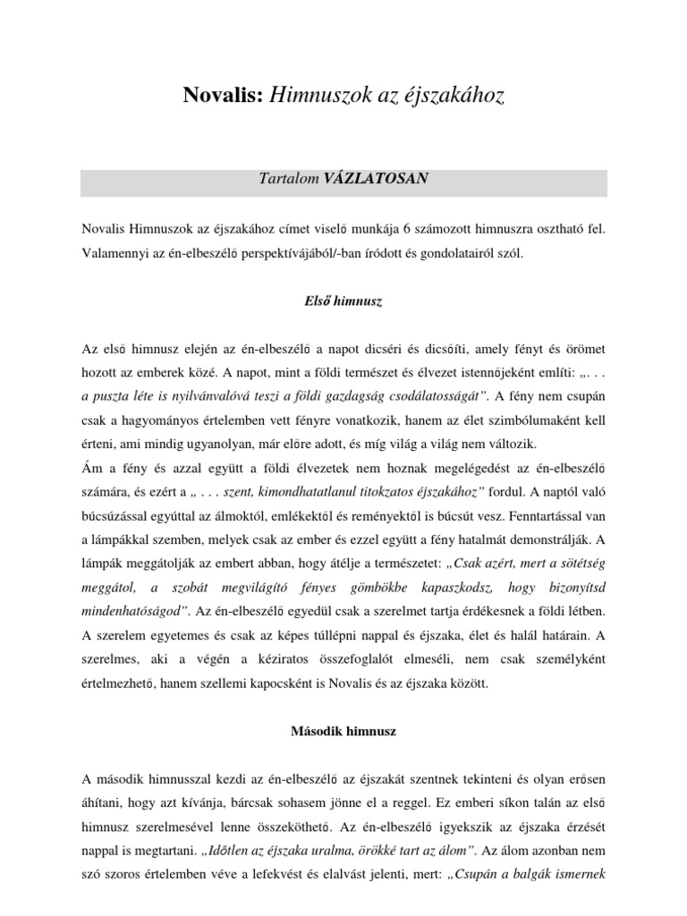 Novalis Himnuszok Az Ejszakahoz Elemzes Jegyzetek